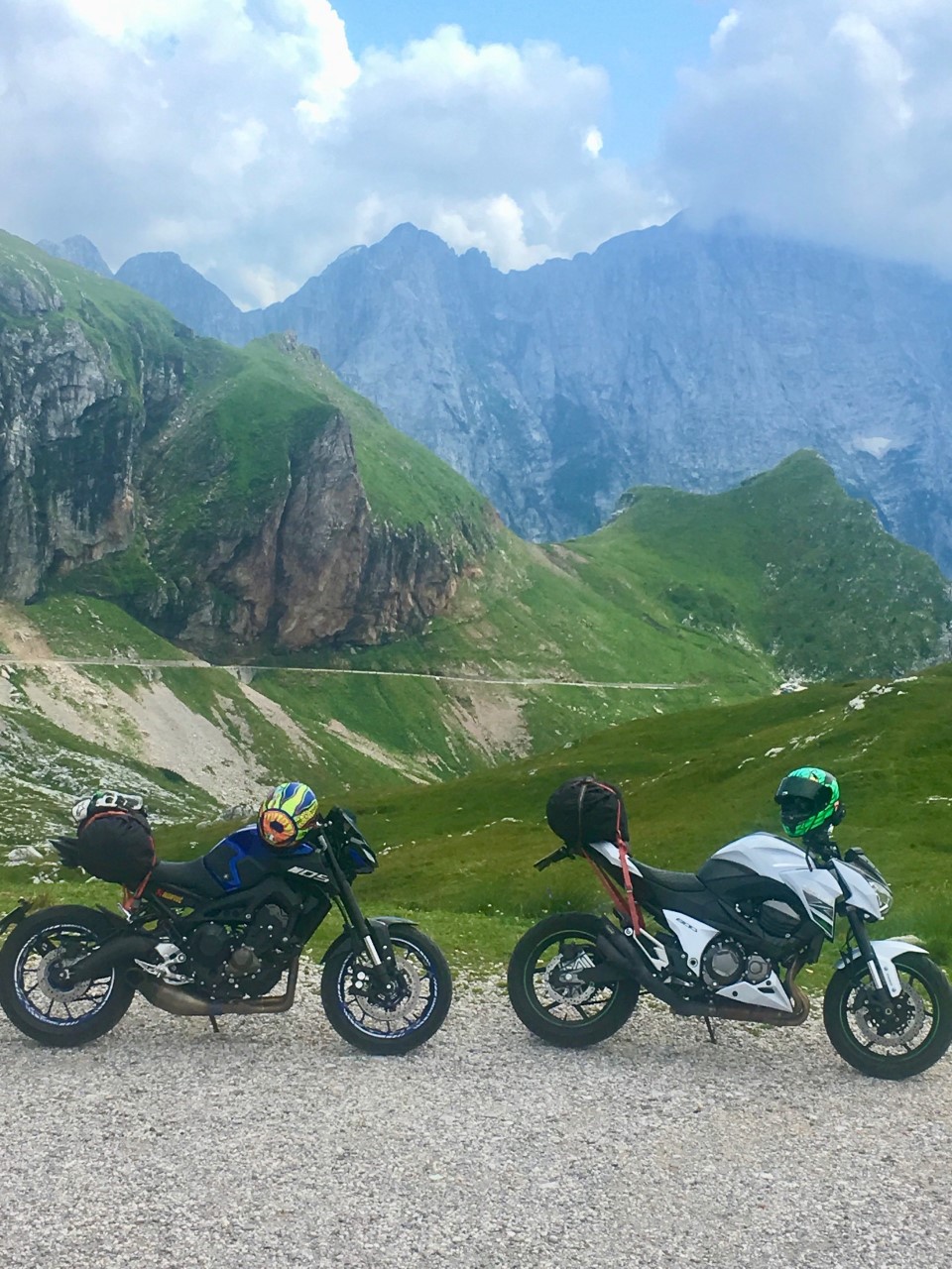 Vanuit het hotel rijd je naar de Vrsic pas, de hoogste bergpas van Slovenië. De pas ligt in de Julische Alpen en heeft 50 haarspeldbochten, werken geblazen dus. Na al dit moois rijd je weer verder en sla je net voor Bovec rechts, de 203 op. Een paar honderd meter verder moet je bij een tolhuisje 5 euro aftikken. Maar die weg is echt de moeite waard. Je stijgt naar zo’n 2072 meter hoog. Via steile wegen, tunnels en smalle paden rijd je in 11 kilometer naar de top van de berg. Eenmaal op de top kan je genieten van een spectaculair uitzicht over Slovenië, maar een stukje klimmen naar boven ook zicht op Oostenrijk en Italië. Weer terug en verder rijd je via Kobarid, Kolovrat en Bohinjska Bistrica weer terug naar Bled, waar we nog 1 keer overnachten
